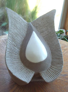 This sculpture is a new direction for me - I've inlayed white Alabama Marble into a small sculpture of Indiana Limestone.